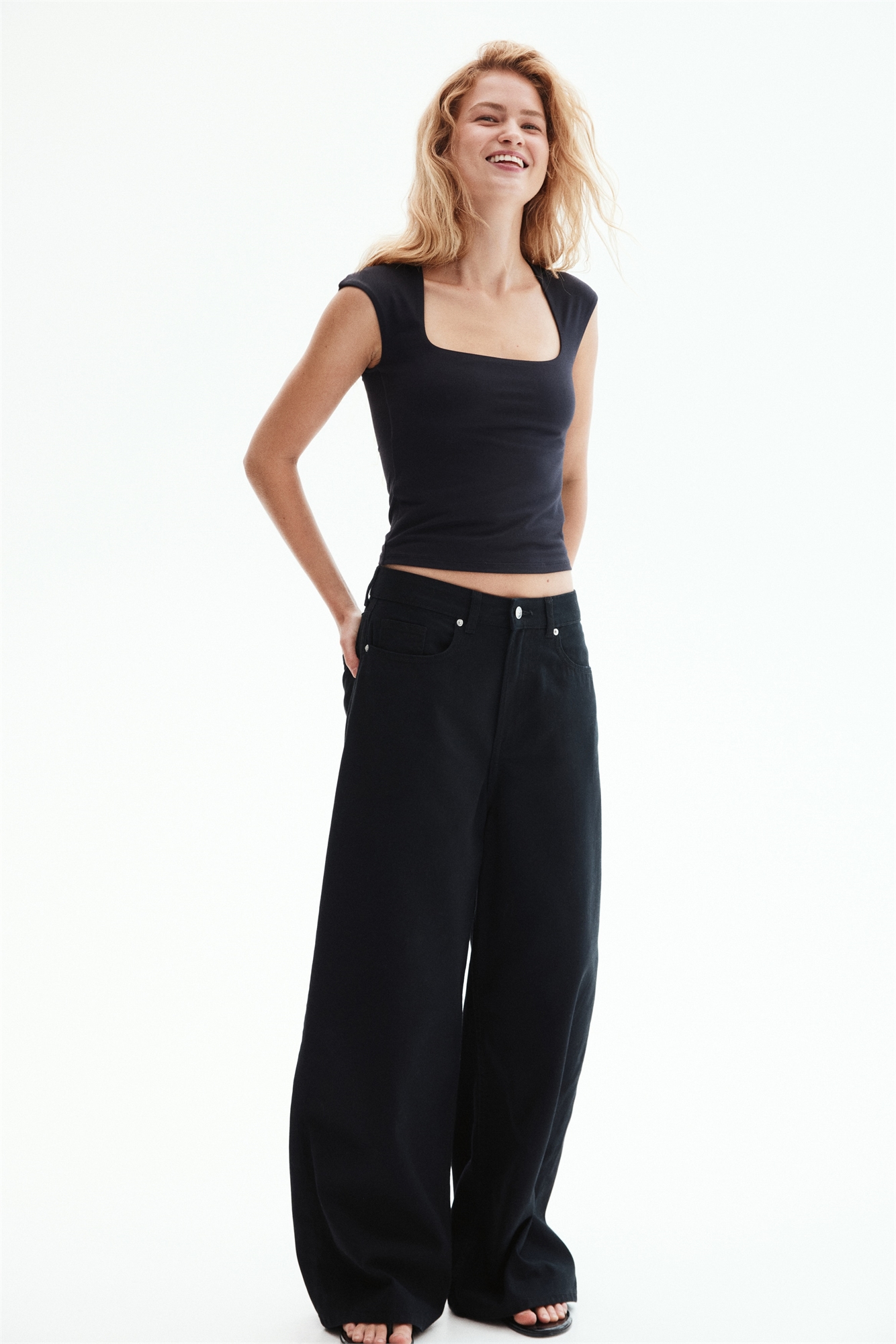 Короткий приталенный топ из мягкого джерси-стрейч. Квадратный вырез, рукава-капельки и прямой подол.
