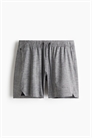Спортивные шорты из функциональной ткани DryMove™, которая отводит влагу от кожи, обеспечивая комфортную сухость во время движения. Регулярный крой с закрытой эластичной отделкой и утягивающим шнурком на талии. Диагональные боковые карманы и карман на молнии в одном боковом шве. Небольшой разрез на подоле.