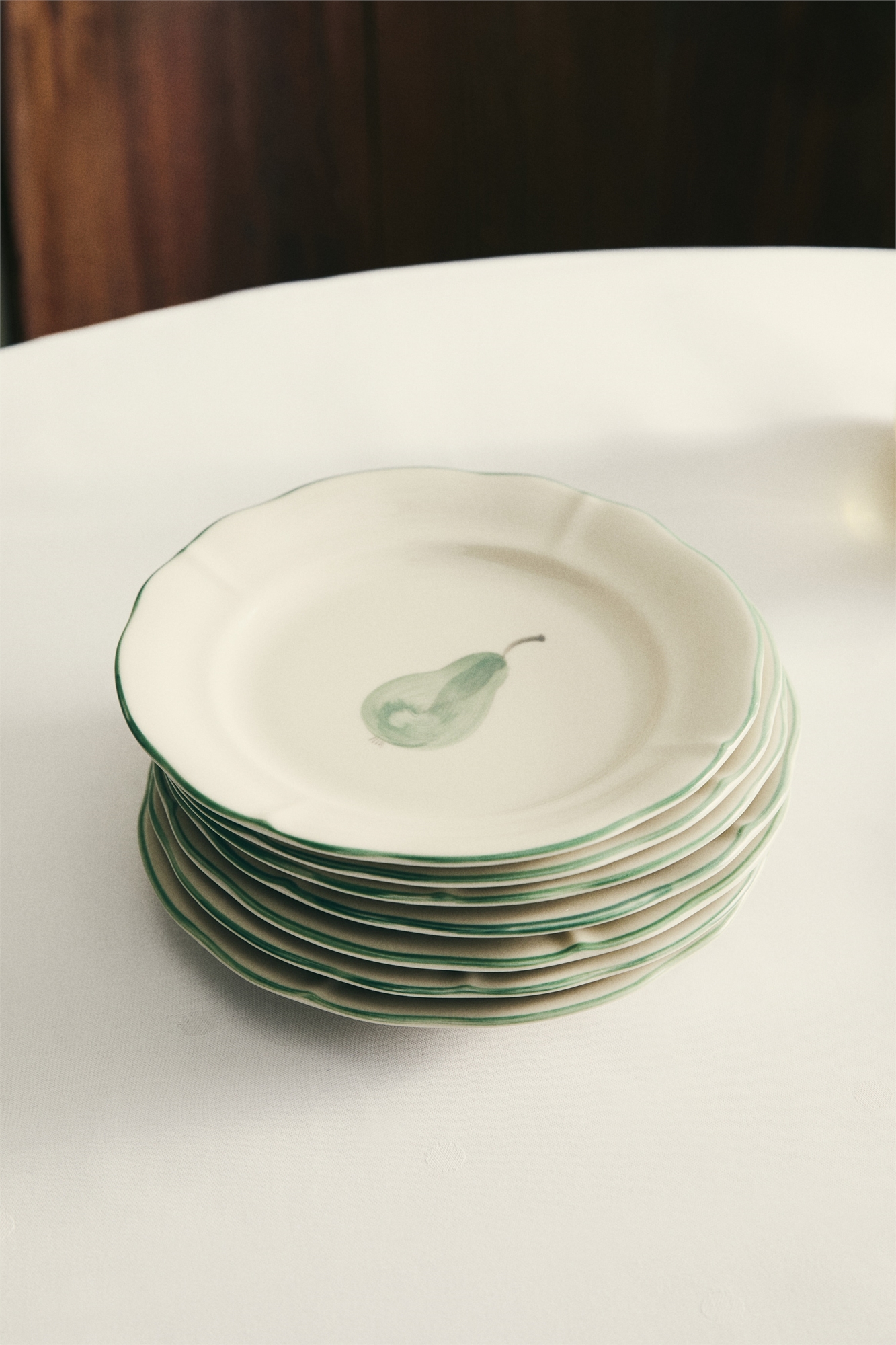 Стартовая тарелка из керамики с винтажным дизайном, мотивом и ободком с ручной росписью.