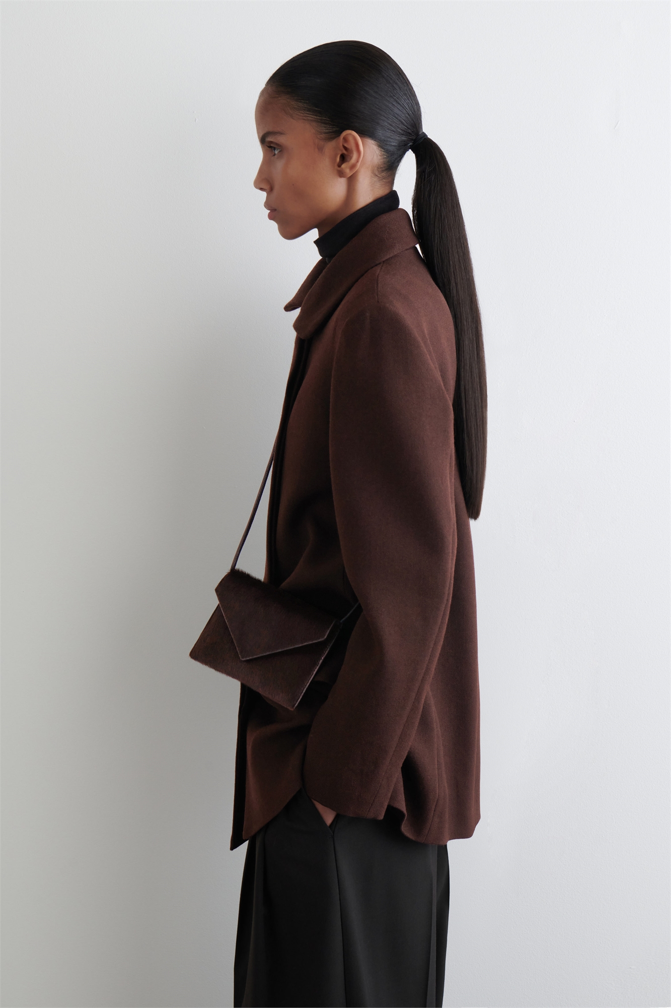 Коллекция аксессуаров осень/зима 2025 года отличается привлекательной отделкой и нюансной цветовой палитрой. Эта современная сумка для мобильного телефона выполнена из нескользящей кожи из волоса пони в нестареющем коричневом цвете и имеет застежку, которую можно сложить, как конверт. Носите ее на теле. COS поддерживает ответственное производство через Leather Working Group Внешний материал и подкладка: 100% кожа. Детали исключены
