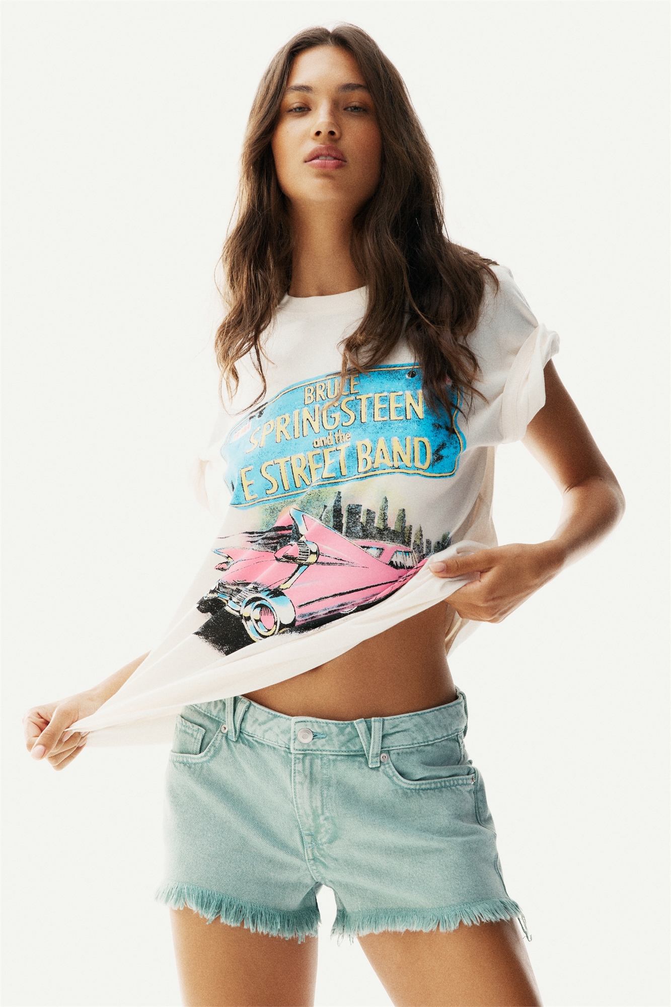 Шорты с 5 карманами из хлопкового денима с заниженной талией, ширинкой на молнии и пуговице и обтрепанной отделкой по краям.