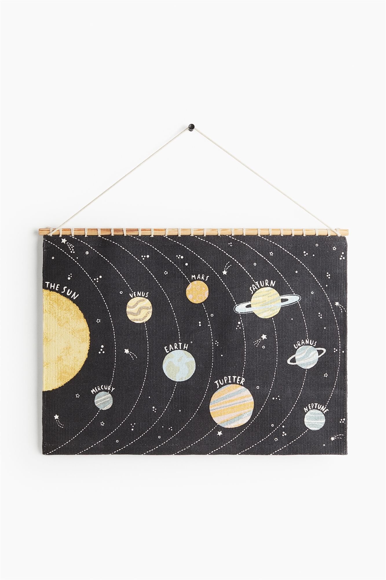 Настенный подвес, сплетенный из хлопковых нитей и подвешенный на деревянных подвесах. Это красочное и увлекательное произведение настенного искусства предлагает веселый способ изучения Солнечной системы, что делает его прекрасным дополнением к любой детской комнате или творческому пространству. Гвозди для подвешивания в комплект не входят.