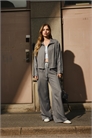 Брюки из саржи с высокой талией, эластичным швом и утягивающим шнурком. Небрежные боковые карманы и широкие штанины с акцентной цветной панелью и отделкой по бокам.