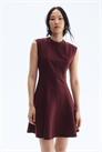 Облегающее мини-платье из плотного джерси с формирующими швами спереди и сзади и расклешенной юбкой со вставками. Модель без рукавов, с круглым вырезом и потайной застежкой-молнией сзади.