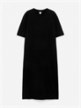 Платье-футболка с короткими рукавами из джерси с легкой сухостью на ощупь. Свободный крой миди с разрезами в боковых швах.