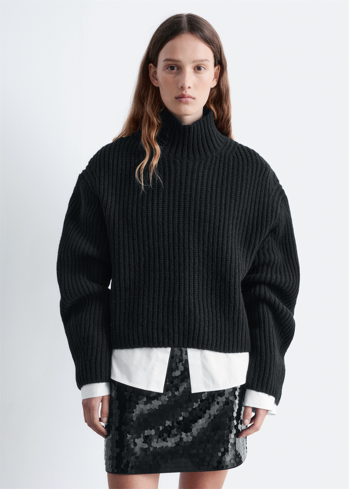 Вязаный из смеси шерсти и хлопка джемпер с водолазкой свободного силуэта, с закругленными рукавами и водолазкой в рубчик. 55% шерсть RWS TE-00047206 Длина джемпера: 50 см / 19,7" (размер S)