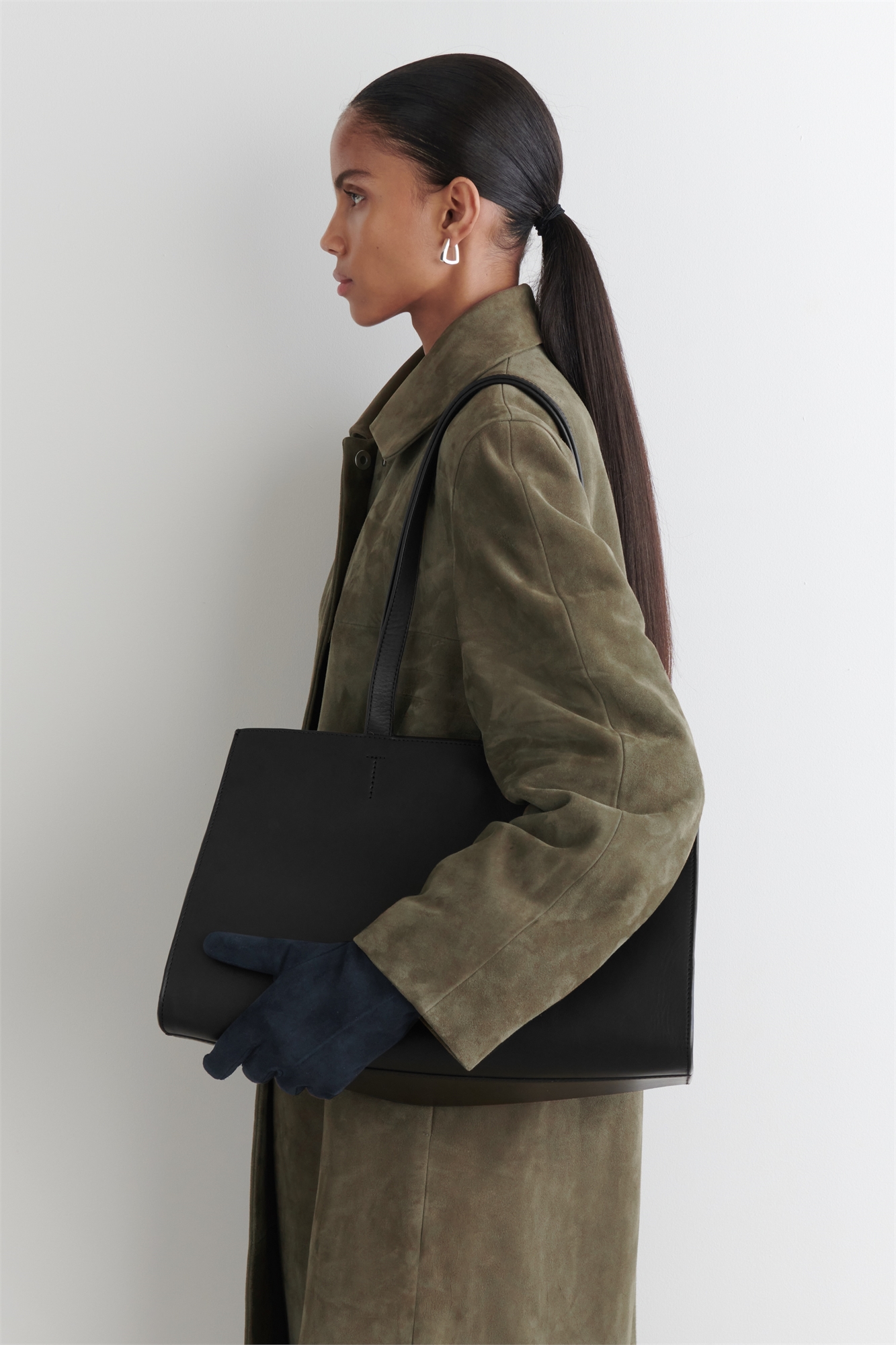 В этом сезоне в аксессуарах используются богатые текстуры и стойкая цветовая палитра. Эти изысканные перчатки изготовлены из замши премиум-класса глубокого темно-синего оттенка и имеют роскошную мягкую подкладку из кашемира и шерсти для тепла. COS поддерживает ответственное производство через Leather Working Group Материал: 100% замша. Подкладка: 95% переработанный кашемир, 5% шерсть RWS. Без учета отделки / Специализированная чистка