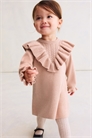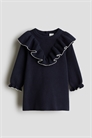 H&M Adorables. Платье из мягкого тонкого трикотажа из высококачественного хлопка. V-образный узел спереди и сзади с объемным воланом, переходящим на плечи. Круглый вырез с ребристой отделкой, застежка на пуговицы сзади и длинные рукава с манжетами, отделанными оборками. Коллекция H&M Adorables - это подборка удобных и качественных вещей, не теряющих актуальности.