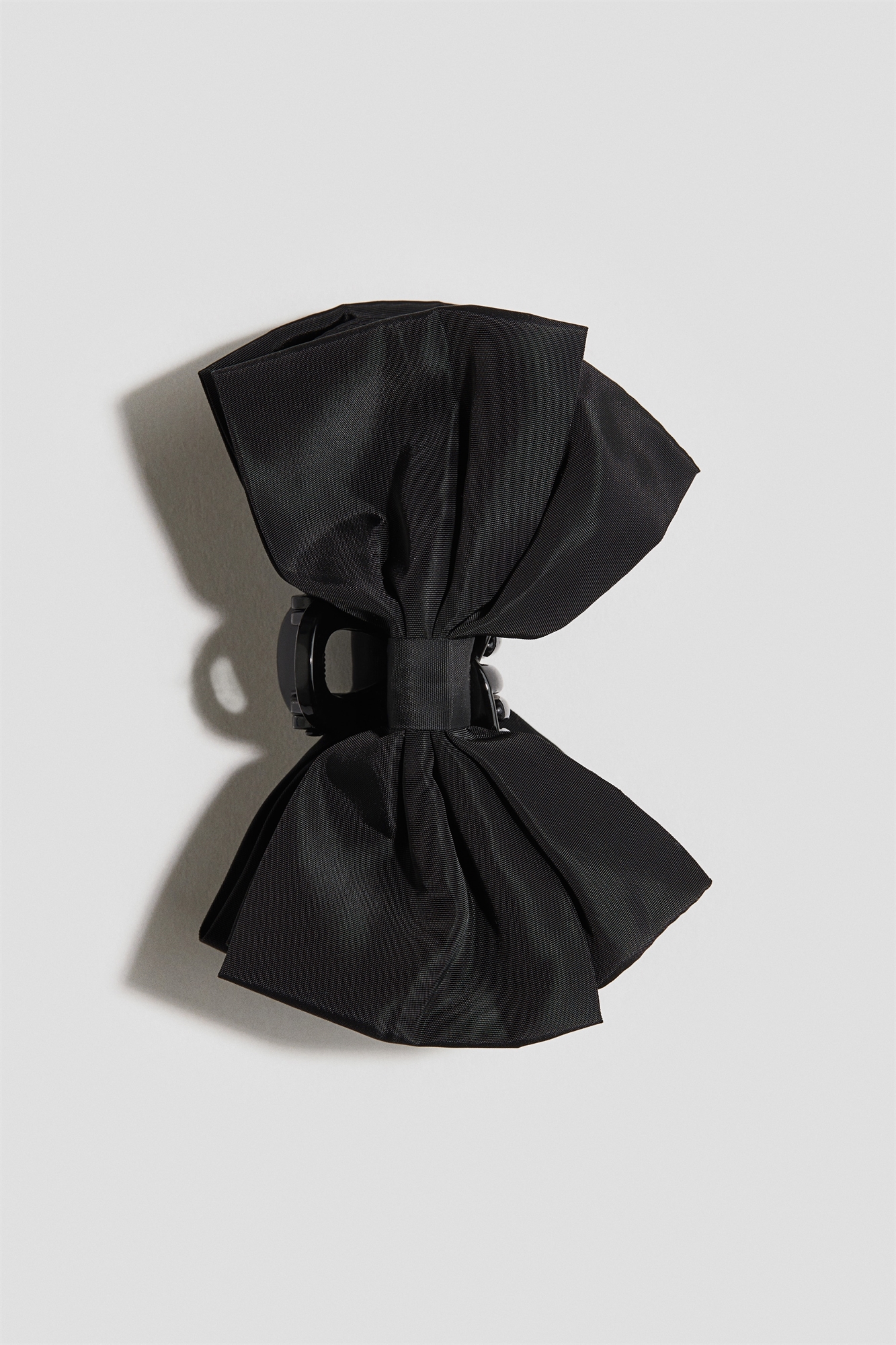 Заколка для волос, украшенная двумя большими тканевыми бантами.