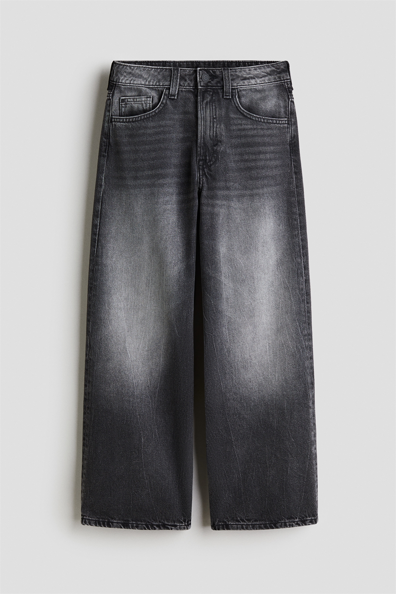 Джинсы с 5 карманами из моющегося хлопкового денима. Свободный крой по бедрам и ляжкам с широкими штанинами. Регулируемая резинка на талии, ширинка на молнии и пуговице.