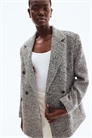 Двубортный блейзер из тканого материала с лацканами с вырезом и прорезными передними карманами с клапаном. Плечевые накладки и формирующие вытачки спереди и сзади. На подкладке.