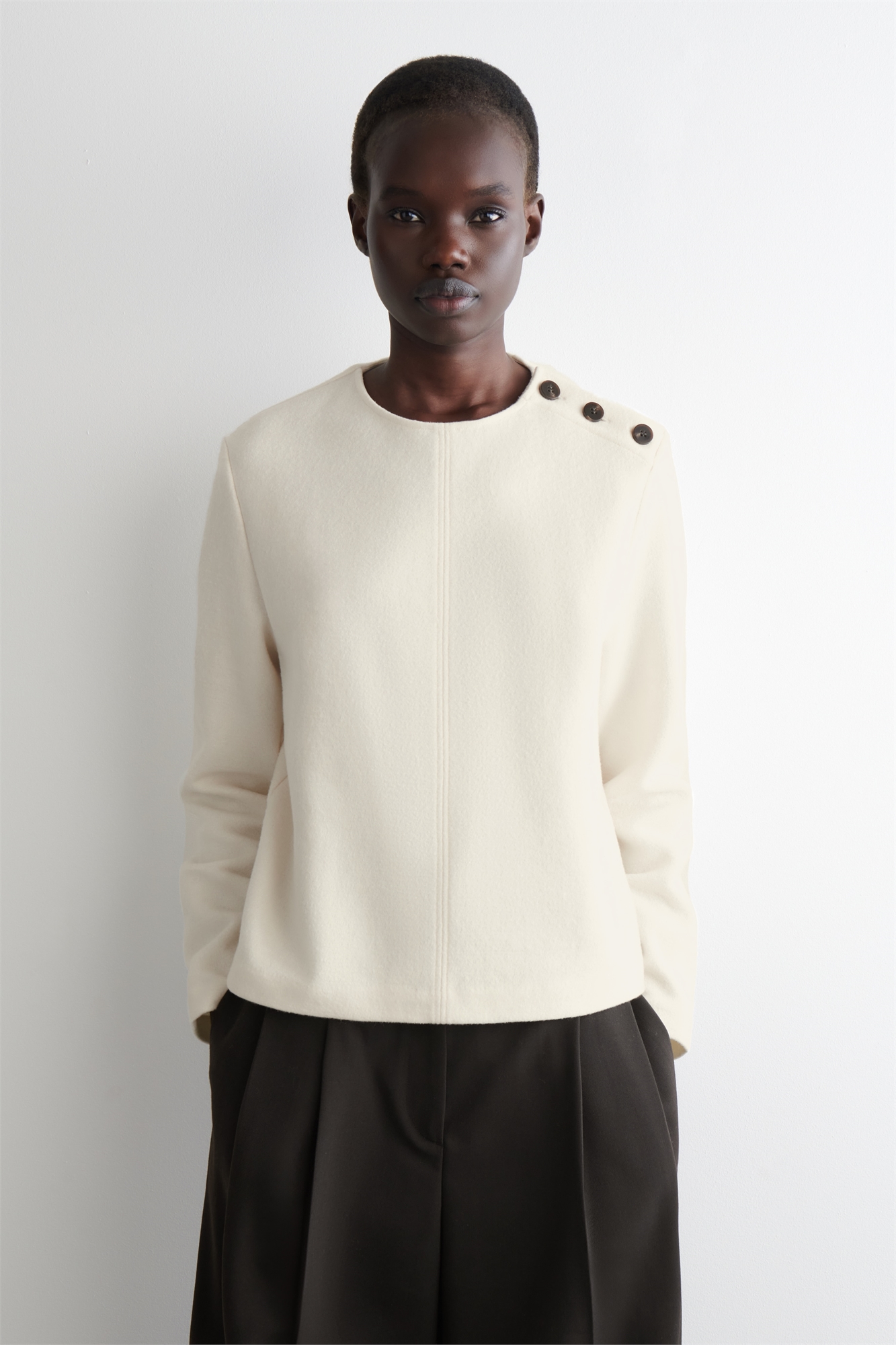 В этом сезоне команда женской одежды обновляет нашу одежду для отдыха, предлагая современные силуэты и изысканные детали дизайна. Эта толстовка антрацитового цвета изготовлена из смеси мериносовой шерсти и вареного хлопка, что придает ей особое качество. Она также имеет застежку на пуговицах вдоль одного плеча. Свободный кройЗастежка на пуговицахЭто изделие содержит волокна шерсти Responsible Wool Standard TE-00047206 (RWS) с ферм, сертифицированных в соответствии с требованиями к благополучию животных и сельскому хозяйству Внешний материал: 50% мериносовой шерсти, 32% хлопка, 18% переработанного полиэстера. Детали исключены/Сухая чистка Длина по спинке в размере S = 57 см/Модель носит размер S