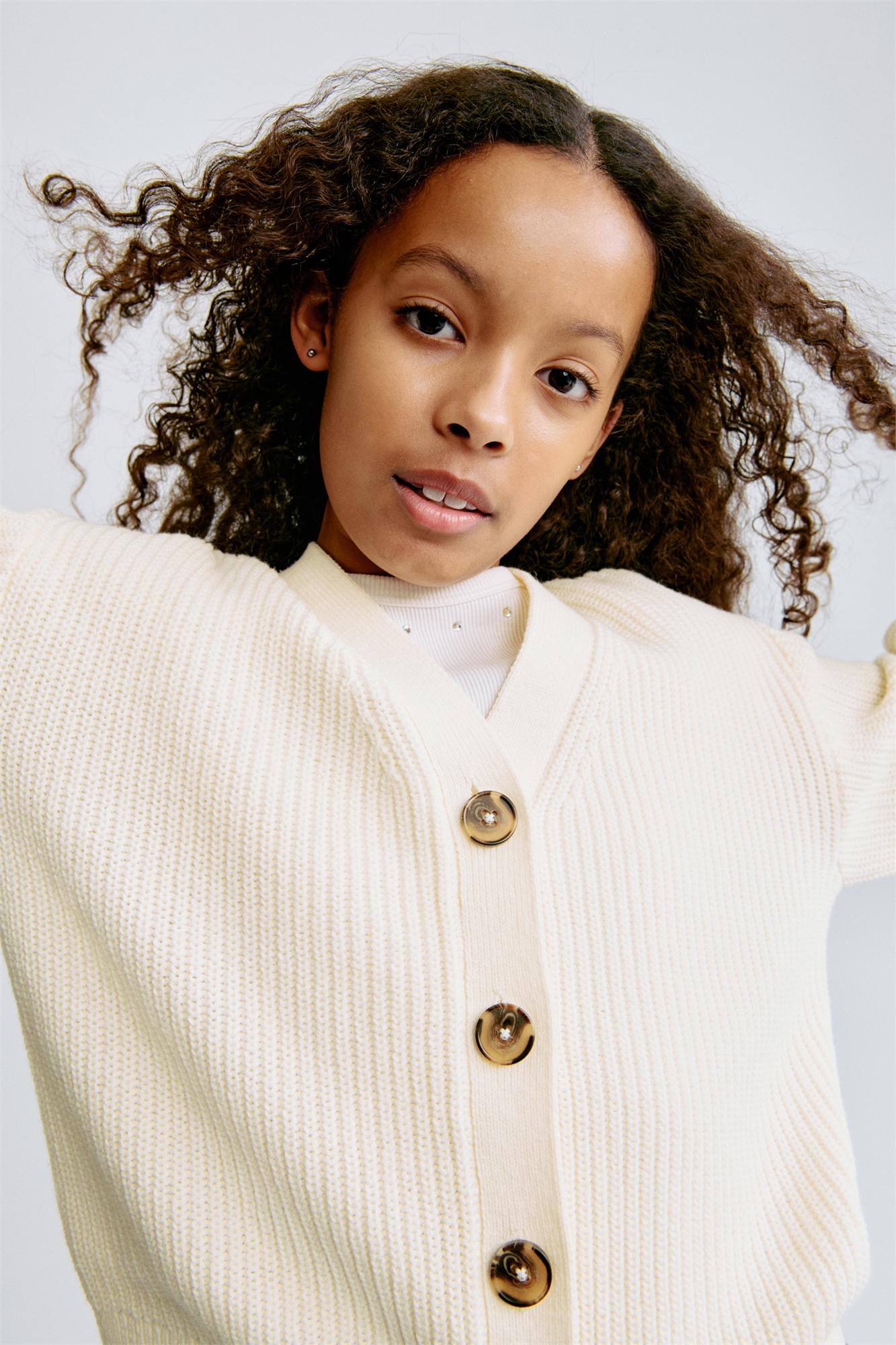 Кардиган из мягкого трикотажа в рубчик из смеси хлопка. V-образный вырез, пуговицы спереди, спущенные плечи, окантовка проймы, манжеты и подол.