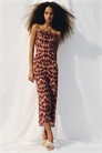 Длинное приталенное платье из сетки с прямым вырезом, узкими регулируемыми бретелями и сборками по бокам, создающими эффект легкой драпировки. Низкая, V-образная спинка со сборчатым швом внизу. На подкладке.