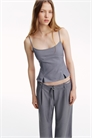 Облегающий топ из тканого материала с регулируемыми узкими бретелями. Видимый шов под бюстом и два шва спереди, которые превращаются в перевернутые боксерские складки на подоле.