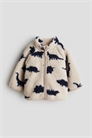 Куртка из мягкого принтованного тедди с воротником-стойкой, потайной застежкой-молнией спереди, защитой подбородка от натирания и длинными рукавами реглан. Узкая отделка из джерси вдоль молнии, на манжетах и подоле.