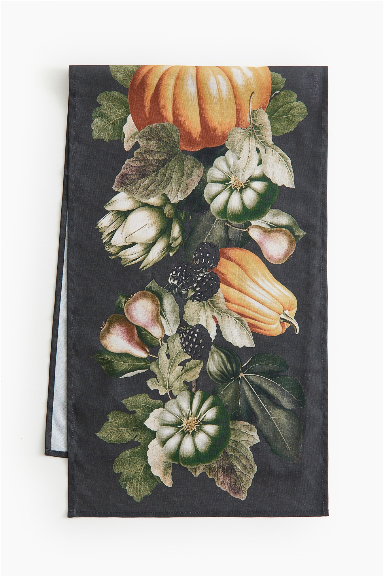 Узорчатая столовая дорожка из хлопкового полотна с водоотталкивающим покрытием, которое позволяет легко вытирать ее насухо и содержать в чистоте.