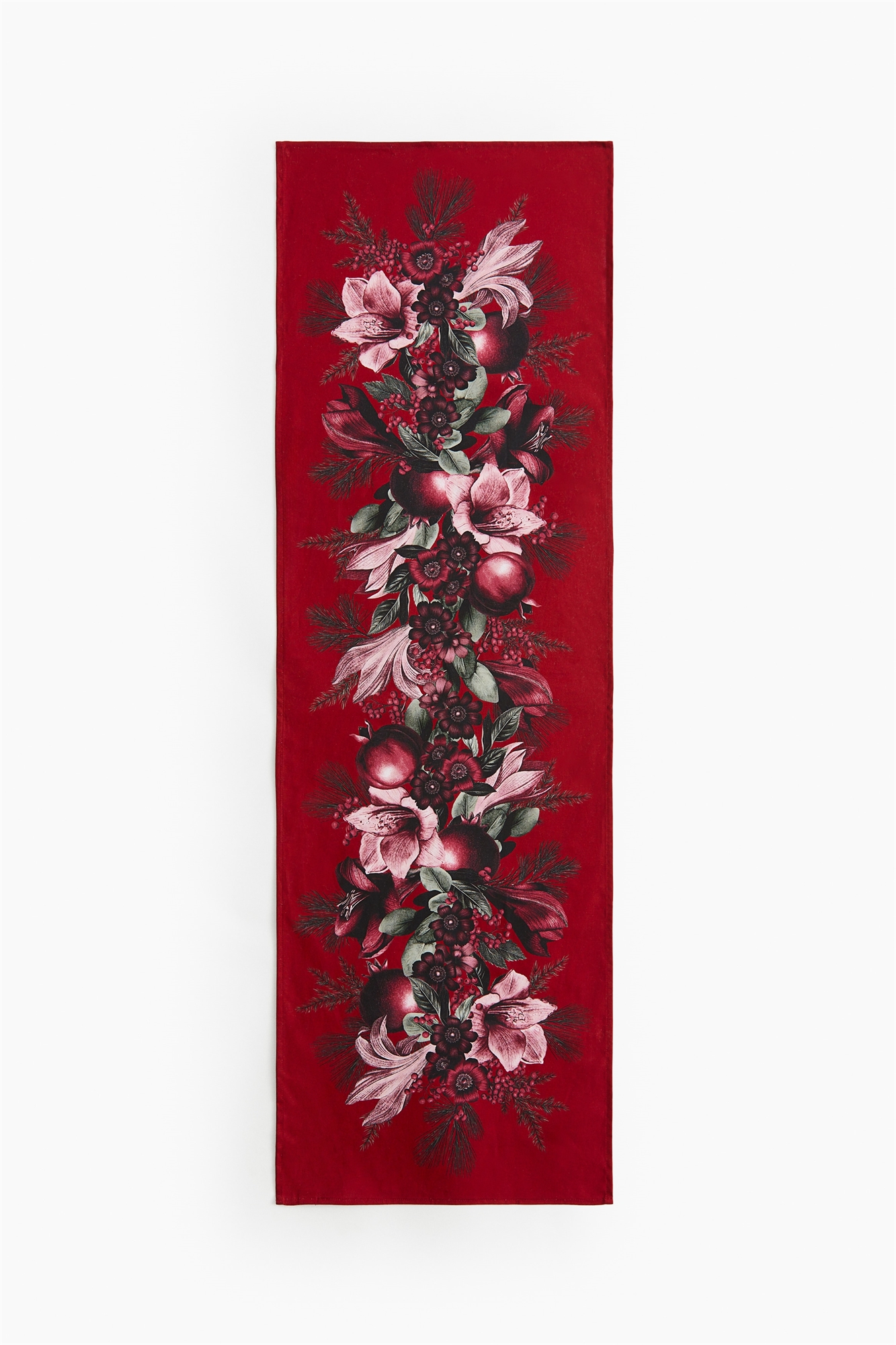 Узорчатая столовая дорожка из хлопкового полотна с водоотталкивающим покрытием, которое позволяет легко вытирать ее насухо и содержать в чистоте.