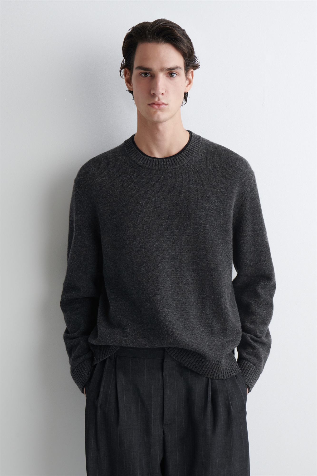Команда мужской одежды представляет современную интерпретацию классического джемпера. Модель выполнена из высококачественной мериносовой шерсти в универсальном антрацитово-сером цвете, имеет круглый вырез и манжеты с двойным краем. Свободный кройЭто изделие содержит волокна шерсти Responsible Wool Standard TE-00047206 (RWS) с ферм, сертифицированных в соответствии с требованиями к благополучию животных и сельскому хозяйству Внешний материал: 100% мериносовая шерсть. Детали исключены/Машинная стирка Длина по спинке в размере M = 65 см/Модель носит размер M