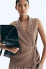 Приталенный жилет из фактурного джерси с лацканами с вырезом и облегающим передом с узкими завязками с одной стороны талии.