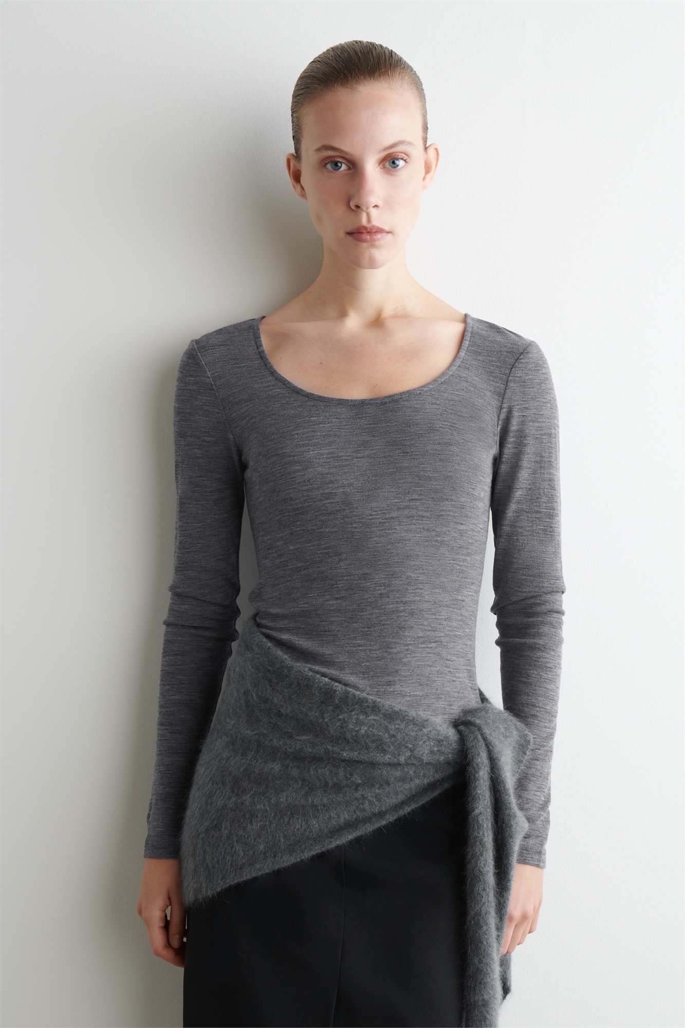 Этот утонченный топ с длинными рукавами из мериноса тонкой вязки подходит для переходного стиля. Он выполнен в универсальном серо-éланжевом цвете и имеет мягкий вырез и французский шов вдоль спины. Его можно носить как самостоятельную вещь, так и подкладывать под другие вязаные вещи. Зауженный кройЭто изделие содержит шерстяное волокно Responsible Wool Standard TE-00047206 (RWS) с ферм, сертифицированных в соответствии с требованиями к благополучию животных и землепользованию Оболочка: 100% мериносовая шерсть. Без учета отделки / Машинная стирка Длина по спинке для размера S составляет 59,6 см / Модель носит размер S