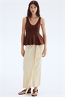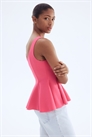 Облегающий топ из плотного трикотажа интерлок с широкими бретелями и V-образным вырезом спереди и сзади. В дизайне предусмотрены вшитые складки, которые раскладываются в расклешенный пеплум.