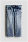 Джинсы с 5 карманами из мягкого хлопкового денима. Свободный крой по бедрам и ляжкам с опущенной промежностью. Регулируемый эластичный пояс и ширинка на молнии с кнопкой.