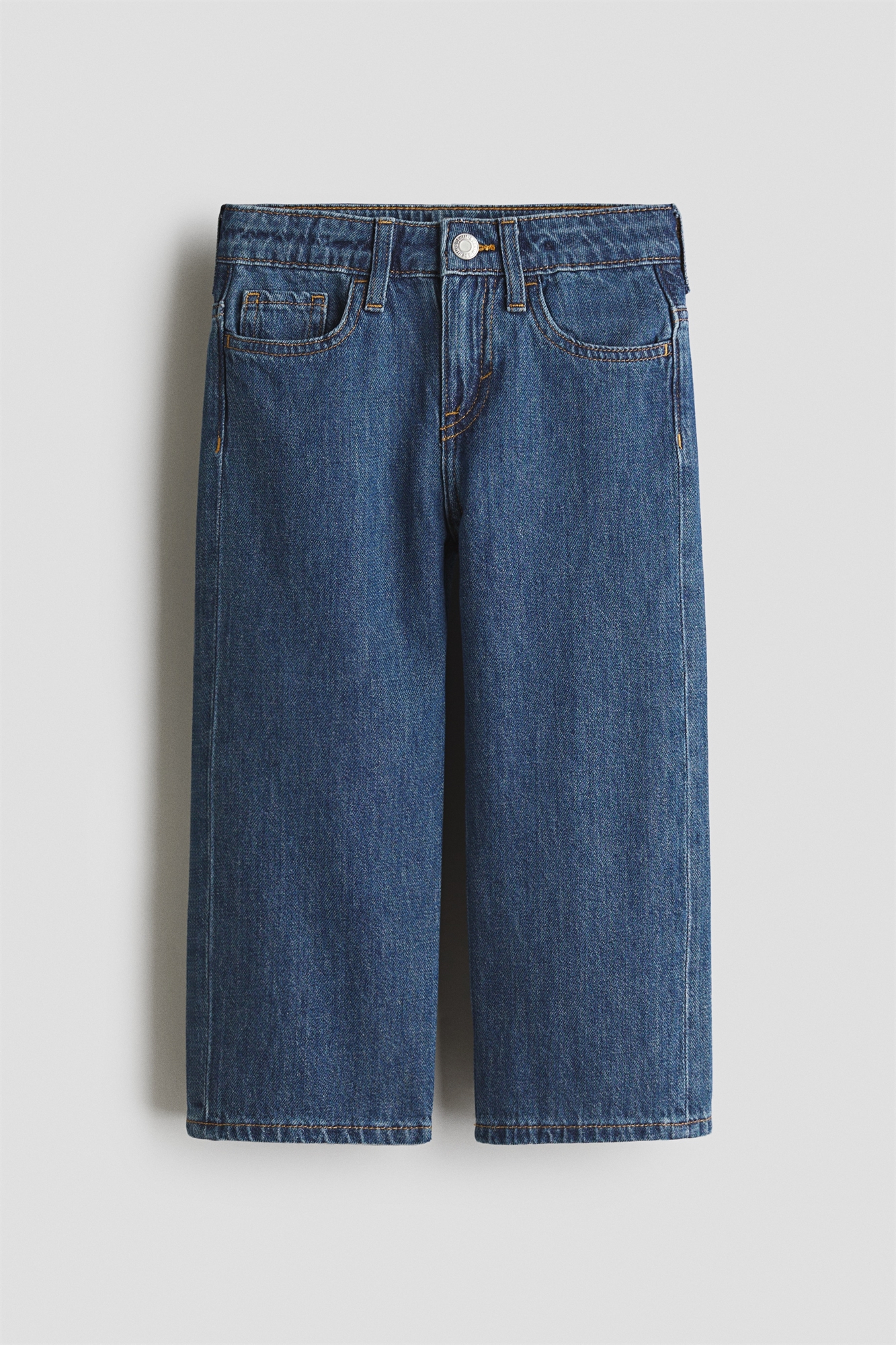 Джинсы с 5 карманами из мягкого хлопкового денима. Свободный крой по бедрам и ляжкам с опущенной промежностью. Регулируемый эластичный пояс и ширинка на молнии с кнопкой.