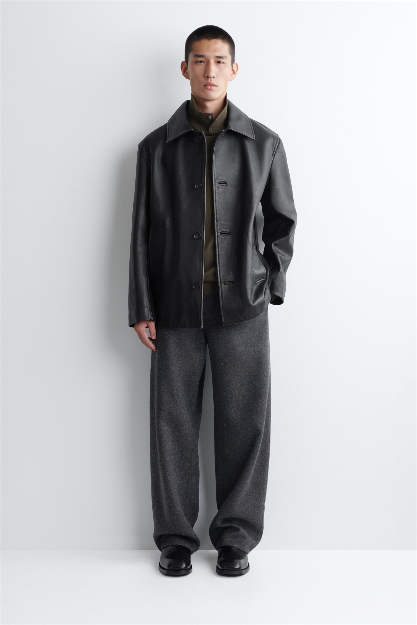 В этом сезоне команда мужской одежды исследует неизменность кожи, переработанной с современным характером. Эта байкерская куртка изготовлена из эластичной бесхромовой шкуры, которая имеет нюансы жженого вида и приобретает уникальную патину в процессе носки. Она имеет классический воротник, изогнутые рукава и прорезные карманы.