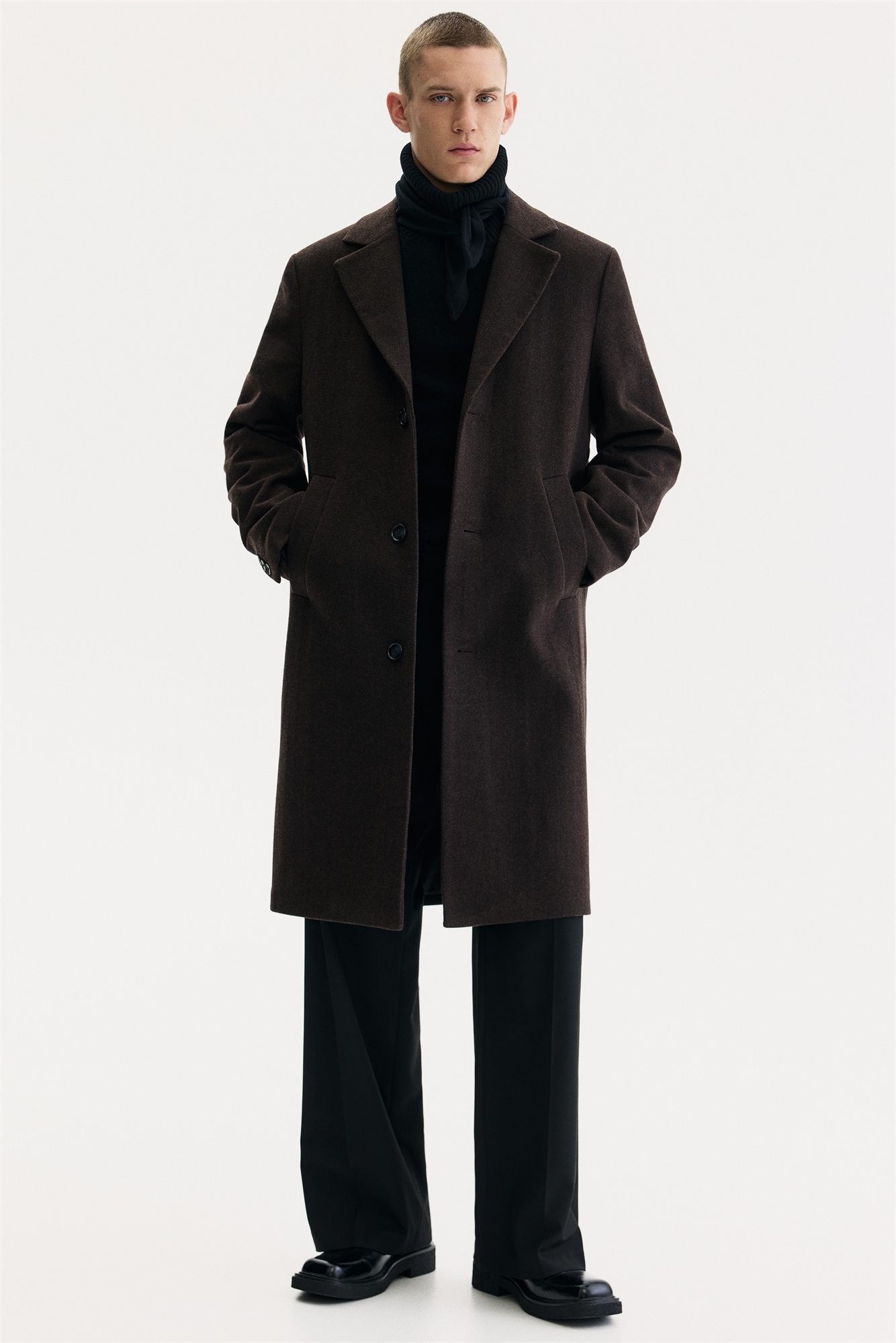 Однобортное пальто из шерстяного бленда
