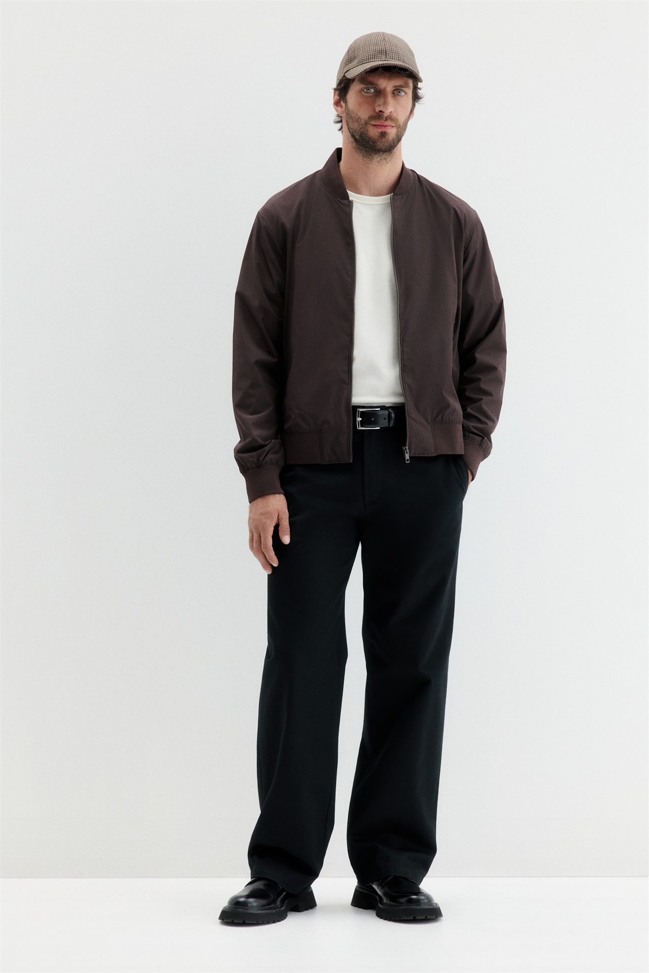 Легкая куртка-бомбер из тканого материала с ребристым воротником-стойкой и застежкой-молнией спереди. Боковые карманы на молнии, широкие манжеты и подол в рубчик. Регулярный крой для комфортной носки и классического силуэта. На подкладке.