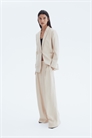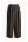 Свободные приталенные брюки из тканого материала с высокой талией, ширинкой на молнии, потайной застежкой на пуговицу и крючок. Диагональные боковые карманы, втачные карманы сзади и широкие ноги со складками в верхней части и складками спереди и сзади.