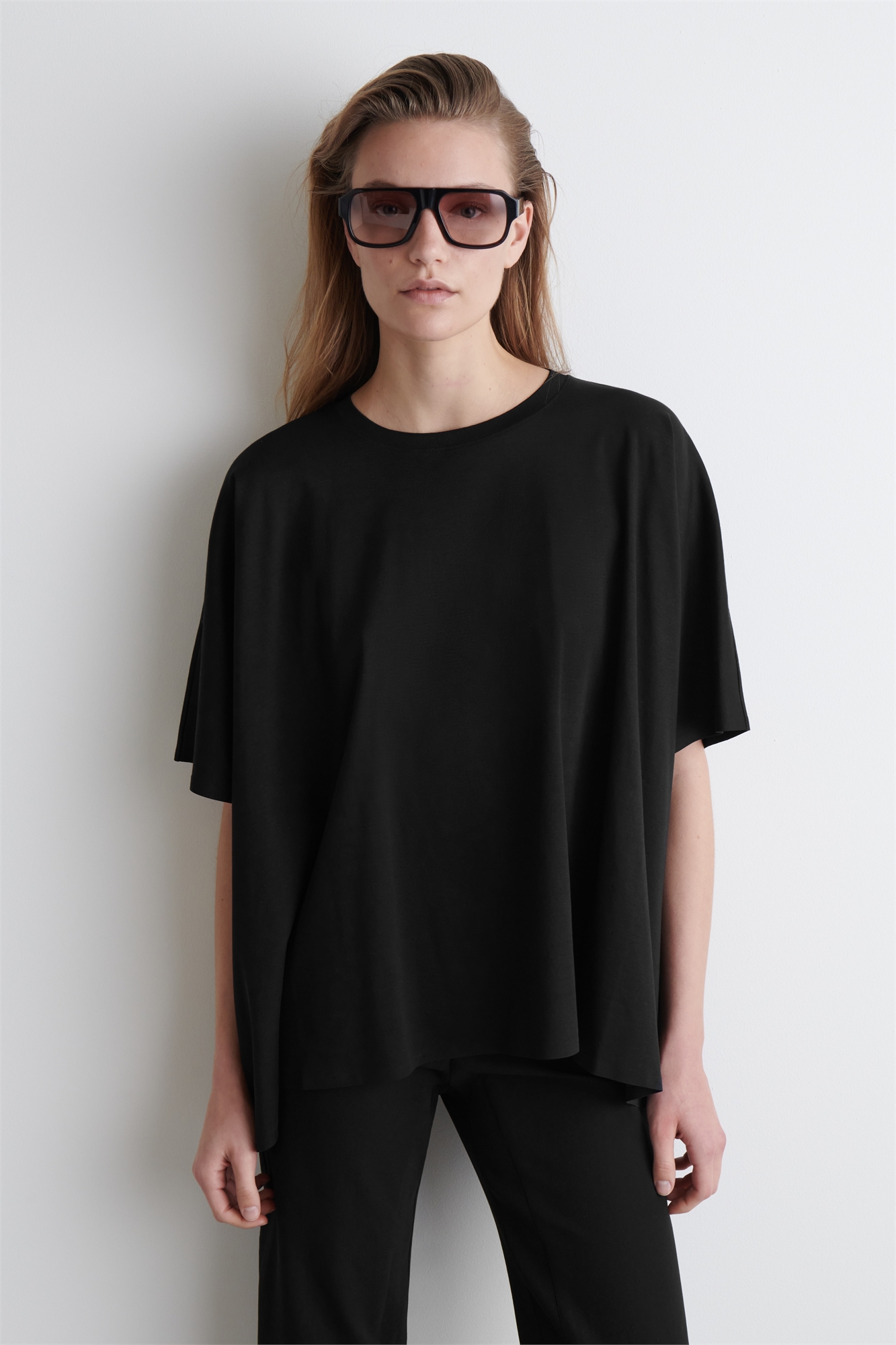 Эта футболка оверсайз с современными рукавами "летучая мышь" и драпированным подолом - переосмысленный вариант гардероба. Она изготовлена из хлопка-джерси, выбранного за его естественную легкость и непревзойденную мягкость. Oversized fit, 140gsmLENZING™ ECOVERO™ viscose - фирменное вискозное волокно, изготовленное из древесной массы Шелл: 100% хлопок. Ребро: 85% ECOVERO™ вискоза, 13% полиэстер, 2% эластан. Без учета отделки / Машинная стирка Длина по спинке для размера XS/S составляет 65 см / Модель носит размер XS/S