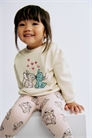 Топ из принтованной толстовки с мягкой ворсистой изнанкой. Круглый вырез в рубчик с застежками с одной стороны (кроме размеров 2-4Y), спущенные плечи, манжеты и подол в рубчик.