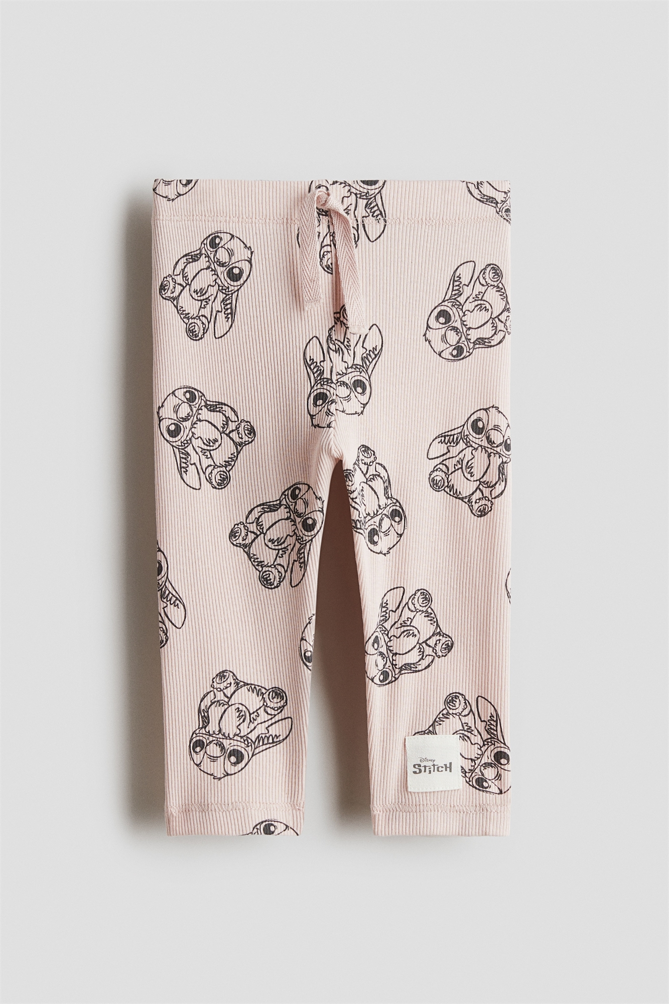 Леггинсы из ребристого хлопкового джерси с принтом по всей длине. Регулируемая эластичная талия с декоративным шнурком.