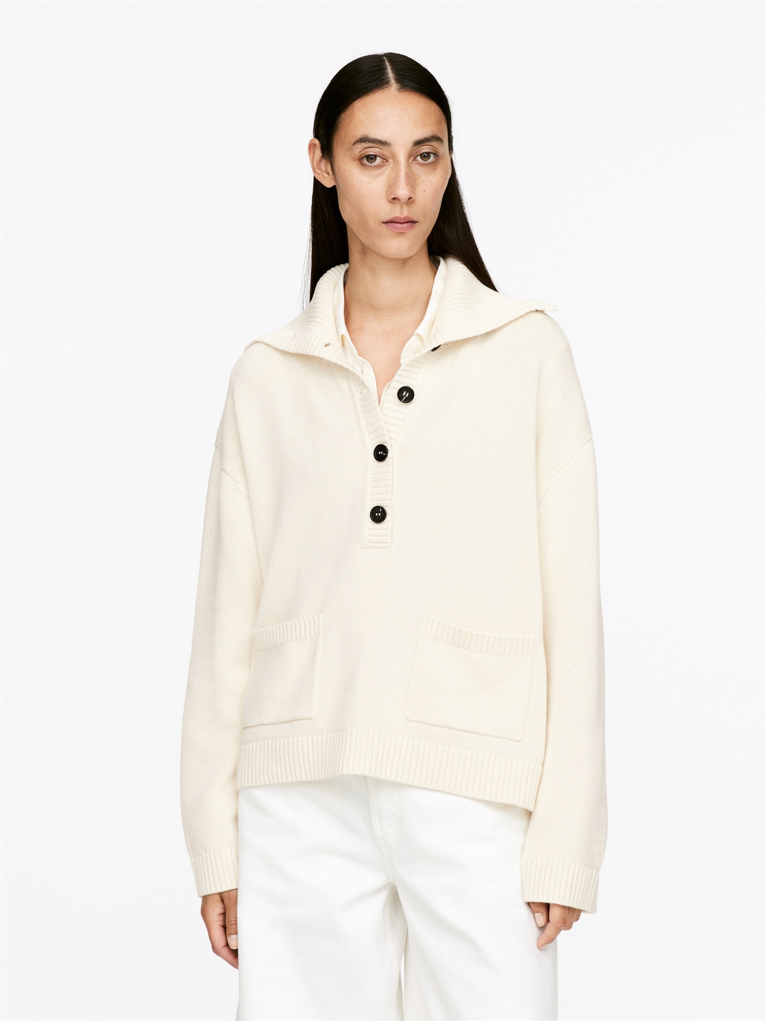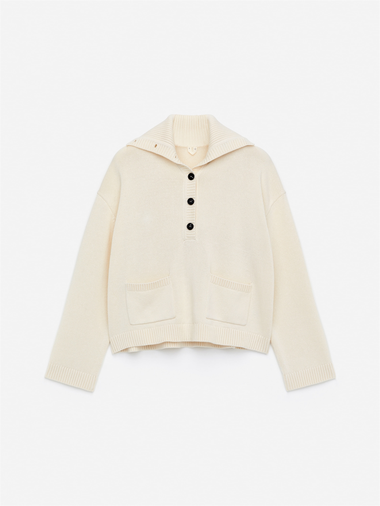Хлопковый джемпер свободного кроя, с полузастежкой на пуговицы и передними карманами.