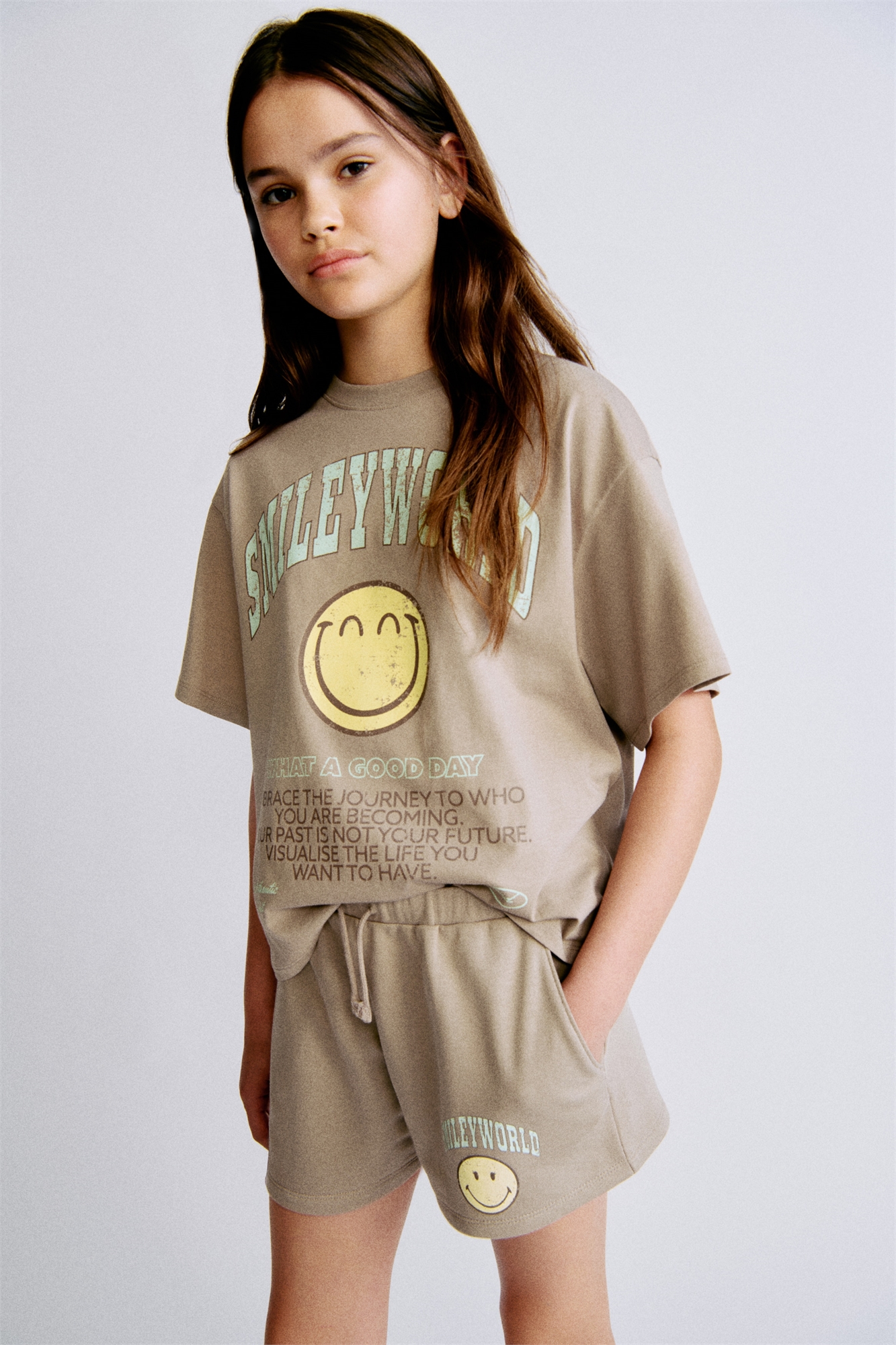 Шорты из легкой толстовочной ткани с принтом. Эластичный пояс с завязками, диагональные карманы спереди и декоративные карманы сзади.