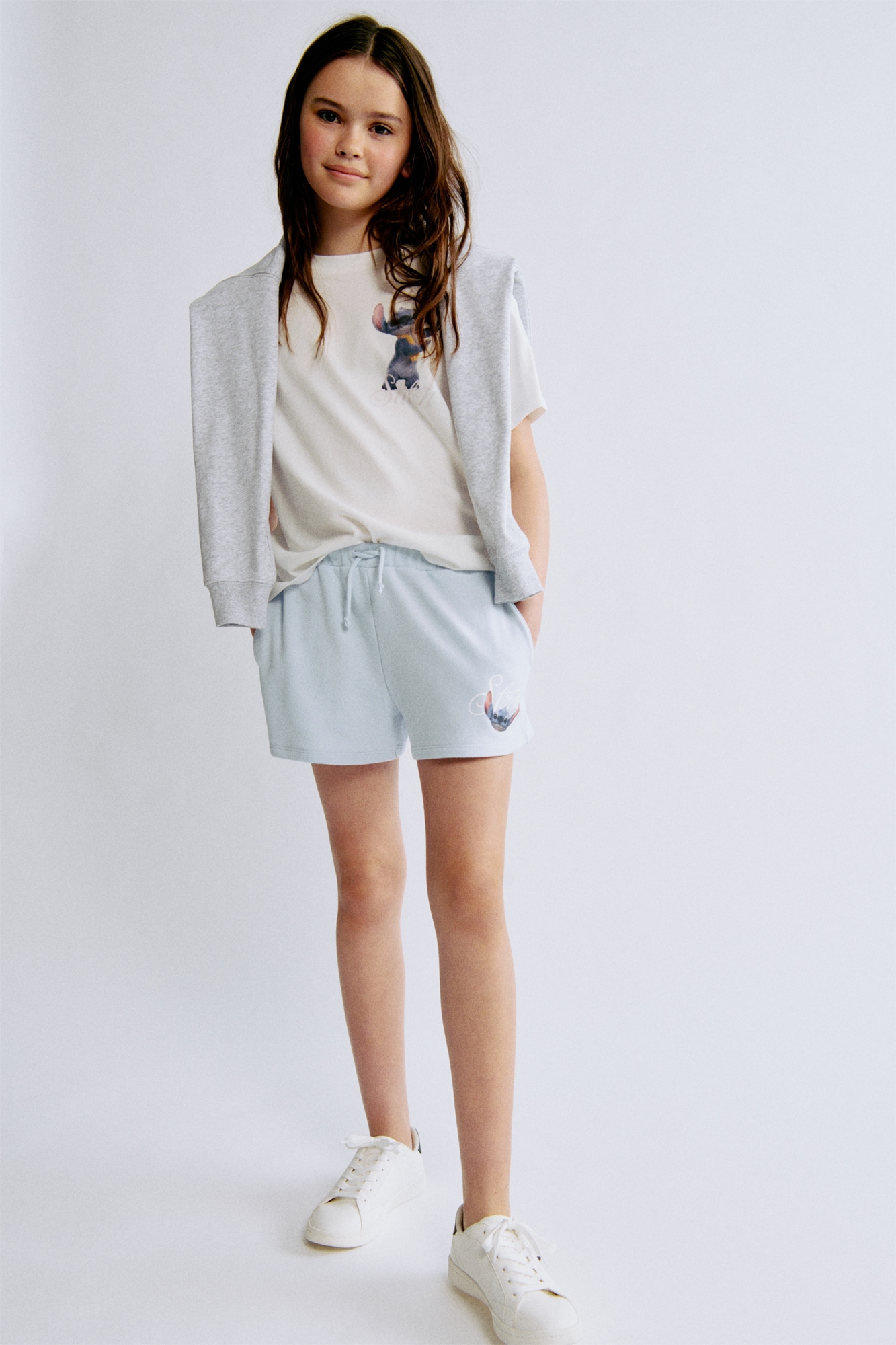 Шорты из легкой толстовочной ткани с принтом. Эластичный пояс с завязками, диагональные карманы спереди и декоративные карманы сзади.