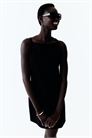 Короткое приталенное платье из тканого материала из смеси льна. Прямой вырез, узкие бретели и потайная застежка-молния сзади. На подкладке.