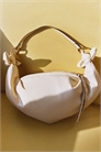 Сумка на плечо округлой формы из ткани с покрытием, ручка с металлическим кольцом и узелком на каждом конце. Потайная застежка-молния в верхней части с круглой застежкой и длинными шипами. На подкладке.