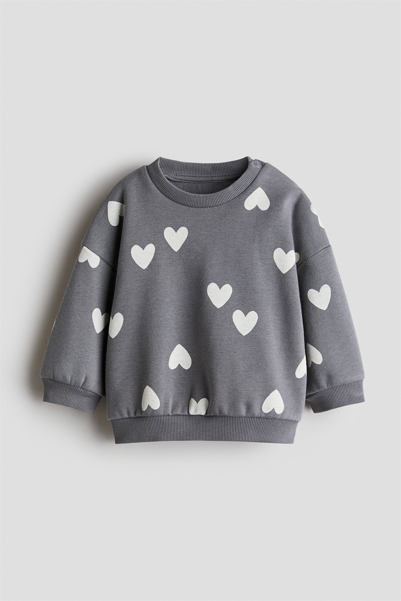 Топ из принтованной толстовки с мягкой ворсистой изнанкой. Круглый вырез с ребристой отделкой, застежки с одной стороны (кроме размеров 2-4Y), спущенные плечи, манжеты и подол в рубчик.