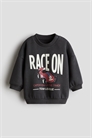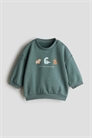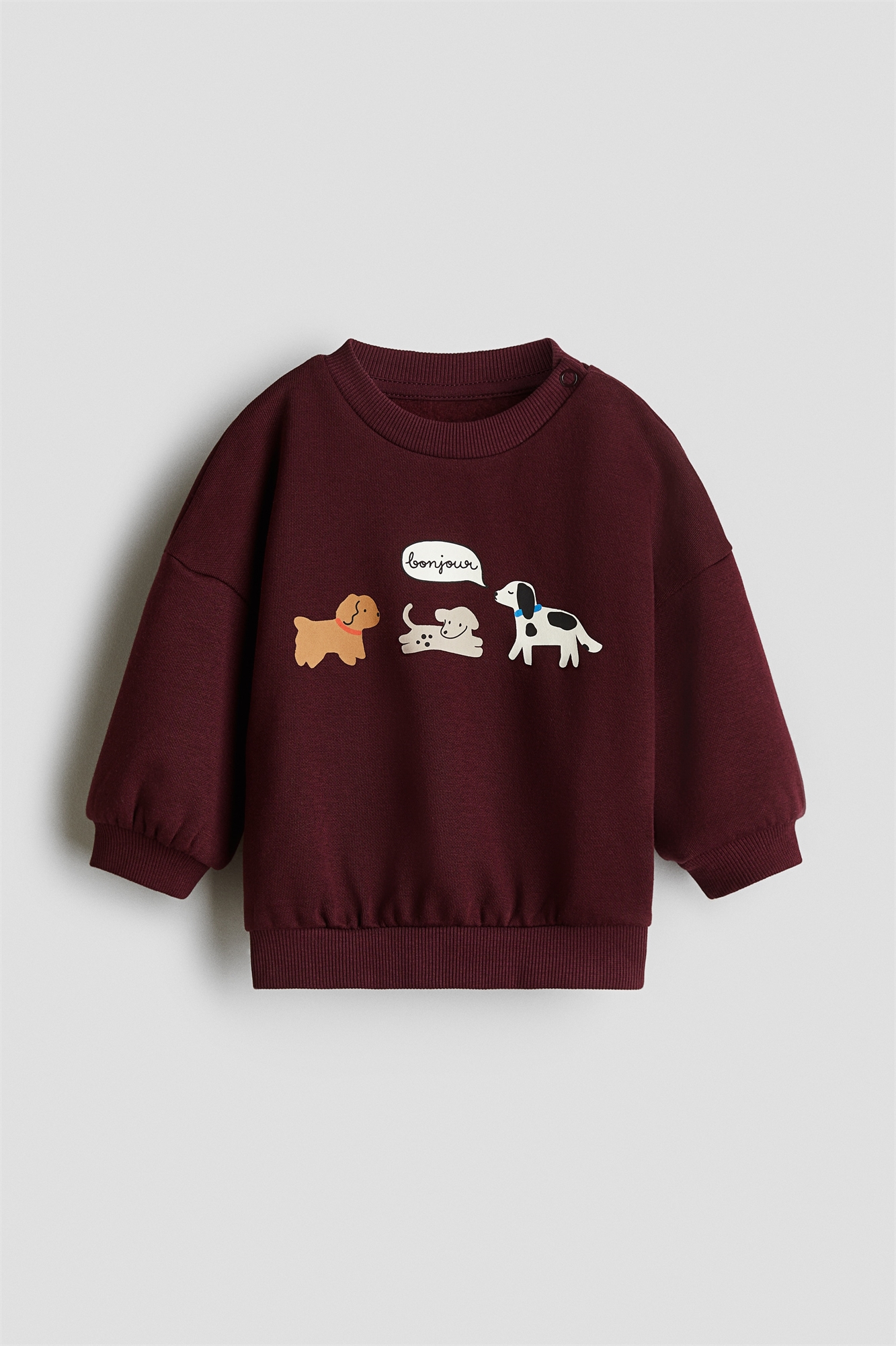 Топ из принтованной толстовки с мягким начесом внутри. Круглый вырез в рубчик с застежками с одной стороны (кроме размеров 2-4Y), спущенные плечи, манжеты и подол в рубчик.