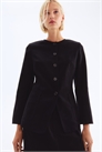 Приталенный блейзер из тканого материала, изготовленного из смеси вискозы и льна. Круглый вырез, застежка на пуговицы до талии и накладные передние карманы. Тонкие подплечники и рукава с разрезом на манжетах. На подкладке.