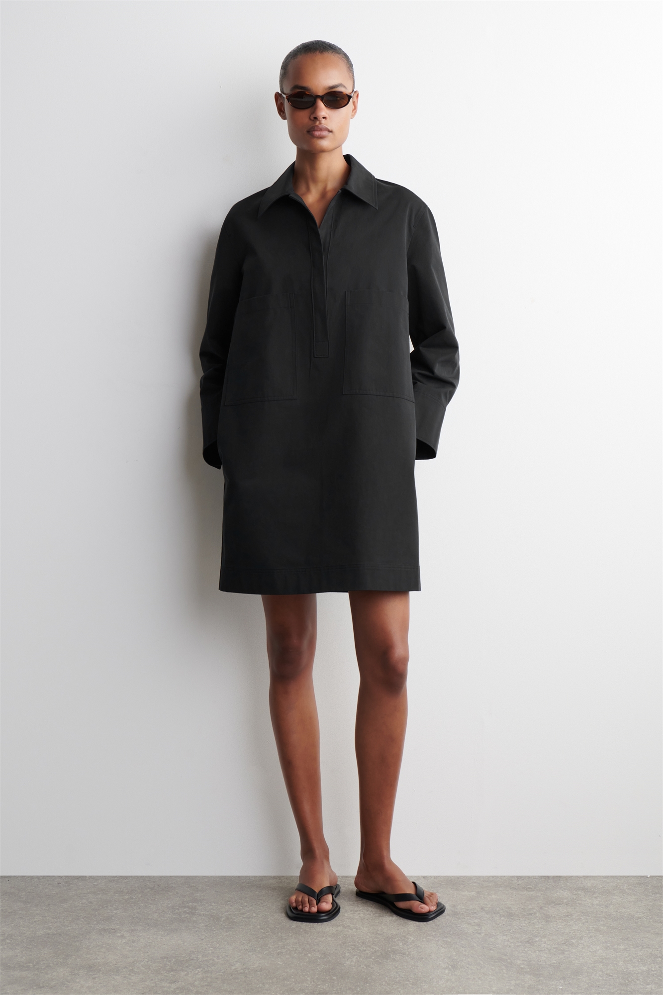 Это современное мини-платье-рубашка позаимствовано у практичности. Изготовленное из натурального легкого хлопка, оно имеет непринужденный силуэт и накладные карманы на груди. Модель имеет слегка укороченные рукава, острый воротник и V-образный вырез горловины. Свободный кройЗастежка на пуговицахПереработанный хлопок производится путем переработки до- и послепотребительской ткани в волокна, которые затем прядутся в новую пряжу Материал: 80% хлопок, 20% переработанный хлопок. Подкладка карманов: 100% хлопок. Без учета отделки / Машинная стирка Длина по спинке для размера EU 36 составляет 85,6 см / Модель носит размер EU 36