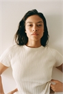 Топ из мягкого кабельного трикотажа с круглым вырезом и короткими рукавами. Узкая тесьма на манжетах и подоле.
