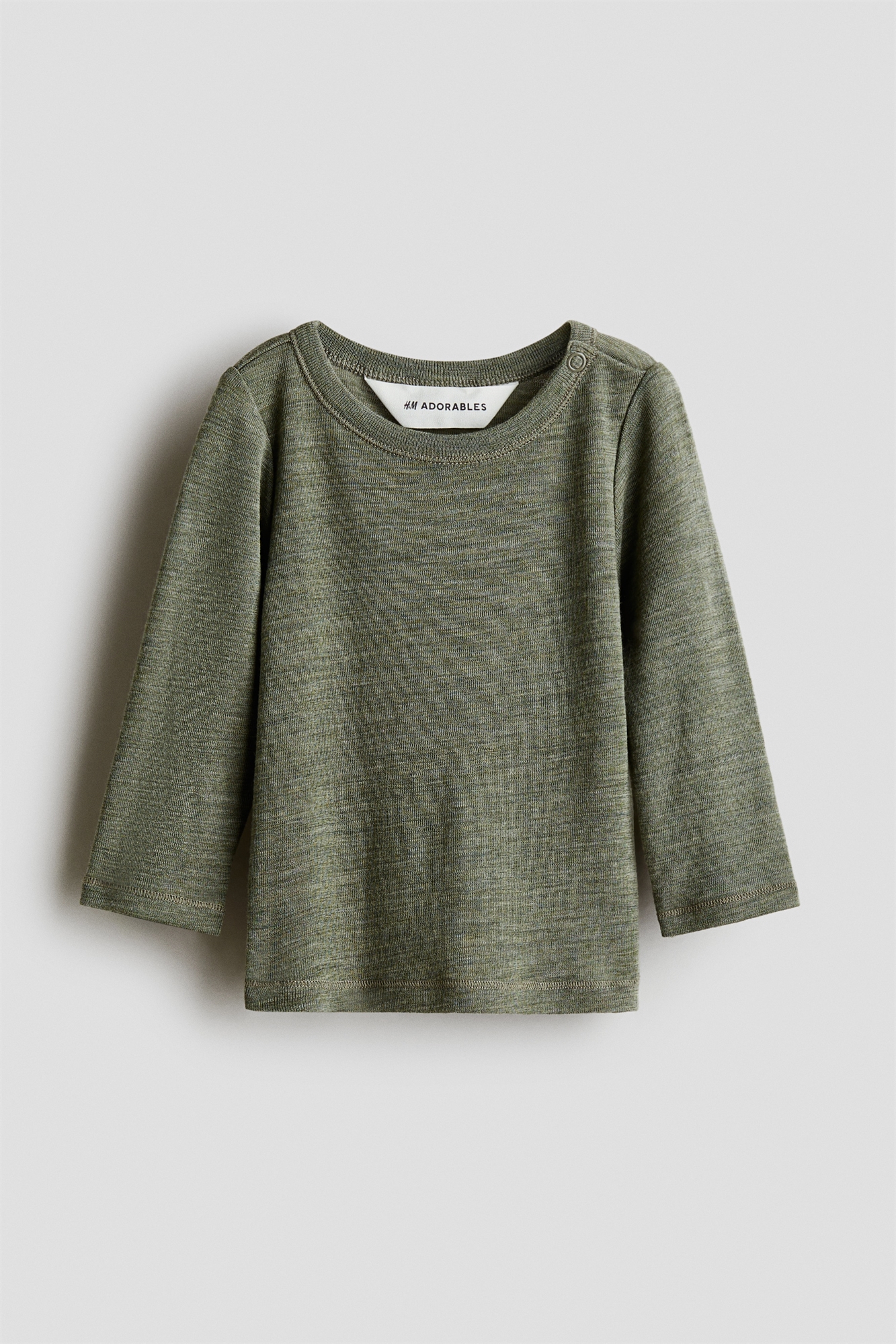H&M Adorables. Топ с длинными рукавами из мягкого трикотажа из шерсти мериноса, который приятно прилегает к коже. Круглый вырез с застежками с одной стороны (кроме размеров 2-4Y). Шерсть мериноса естественным образом регулирует температуру и обеспечивает долговечную одежду с бесконечным комфортом, которую можно носить в течение многих лет. Коллекция H&M Adorables - это подборка качественных вещей повышенной комфортности, которые не подвластны времени.