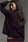 Джемпер оверсайз из мягкого тонкого трикотажа с ребристой горловиной и длинными, слегка расклешенными рукавами.