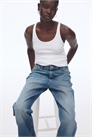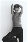 Облегающий жилет-топ из хлопка в рубчик с узкими бретелями и удобным вырезом-лодочкой.