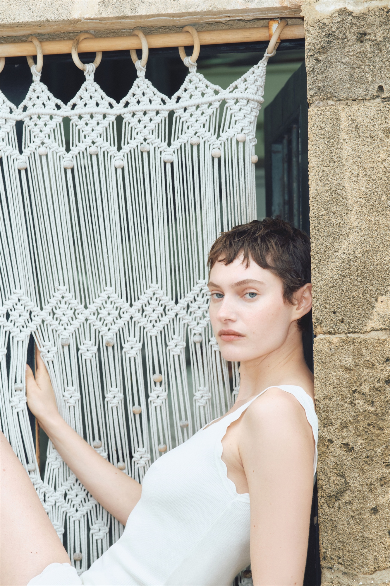 Облегающий жилет-топ из мягкого тонкого трикотажа с глубоким круглым вырезом спереди и сзади. Широкие бретели и гребешковая отделка по вырезу горловины и проймам.
