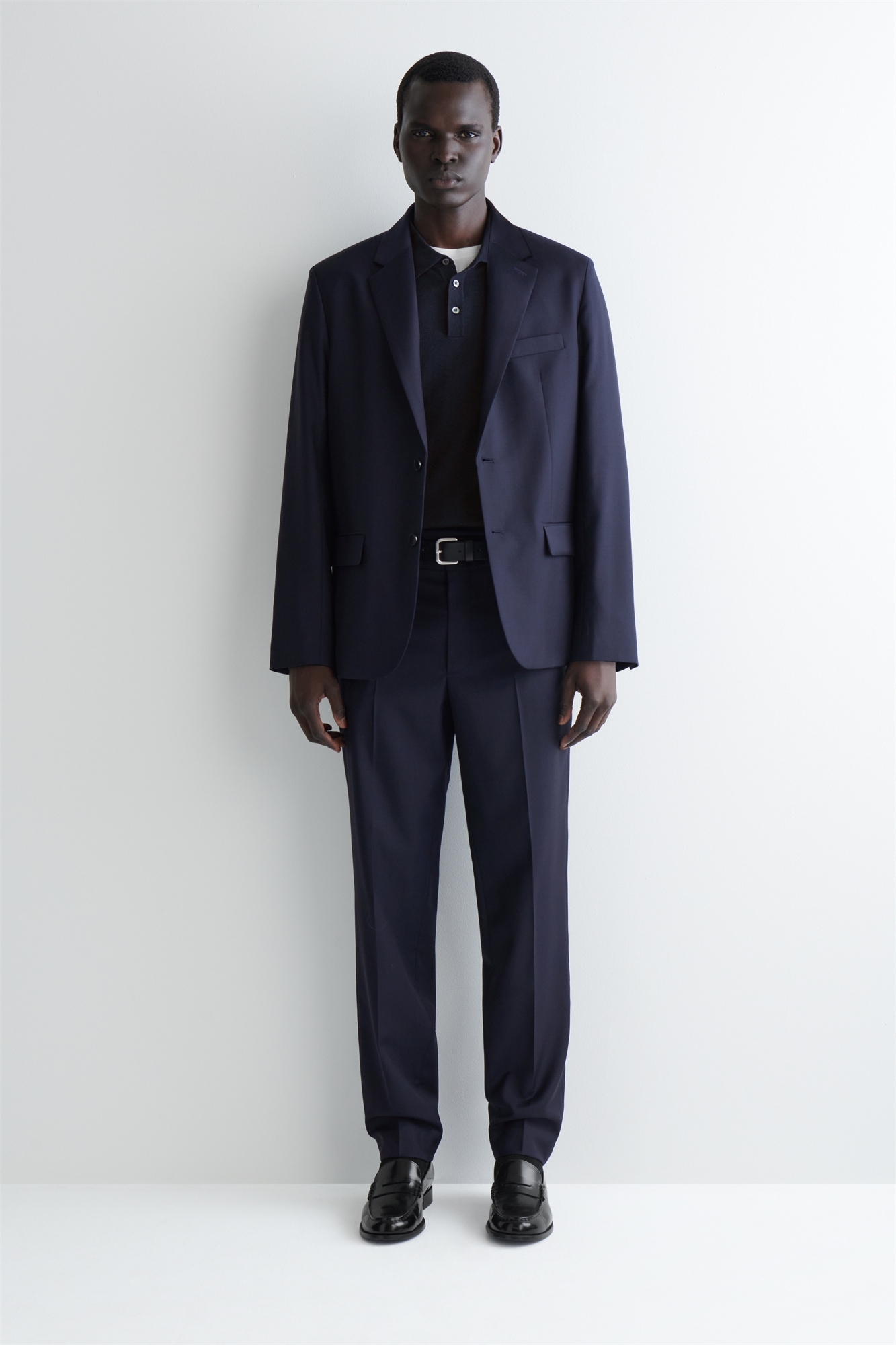 Коллекция костюмов COS сочетает в себе безупречное качество и современный дизайн. Эти брюки с прямыми ногами изготовлены из первоклассной шерсти NATIVA™ и имеют чистый пояс, прорезные карманы и заутюженные складки спереди. Наденьте их с классической рубашкой. Regular fitЗастежка на крючок, планку и молниюШерсть NATIVA™ добывается с использованием регенеративных методов, которые соответствуют стандартам благополучия животных, требованиям землепользования и стандарту Responsible Wool Standard, поддерживая местные сообщества и способствуя улучшению здоровья почвы с течением времени Материал: 100% шерсть NATIVA™. Подкладка карманов: 100% хлопок. Без учета отделки / Сухая чистка Внутренняя длина ноги размера EU 48 составляет 80,7 см / Модель носит размер EU 48